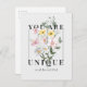 You are Unique Floral Slogan Postcard