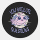 Lovely design featuring a cute axolotl and the quote "You axolotl questions". Good for the young and the old.