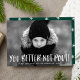 Cute holiday photo card featuring your horizontal photo with "You Better Not Pout!" in white handwritten lettering. Personalize the front of the funny holiday photo card with your custom greeting, family name, and the year. The card reverses to a green and white snowflake pattern. This Christmas card is perfect for displaying photos of your kids pouting, crying, etc.!