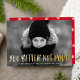 Cute holiday photo card featuring your horizontal photo with "You Better Not Pout!" in handwritten gold foil lettering. Personalize the front of the funny holiday photo card with your custom greeting, family name, and the year. The foil Christmas card reverses to a red and white snowflake pattern. This Christmas card is perfect for displaying photos of your kids pouting, crying, etc.!