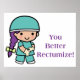 A fun and funny way to promote good health! A cute little kid doctor pulling up her gloves. No one likes to talk about getting a colonoscopy but it's a part of life. So instead of saying, you better recognize, you better rectumize instead!