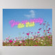 Modern & uplifting design for any room in the home. Features background picture of wildflowers and blue sky with pink and yellow neon text that reads "you can totally do this"
