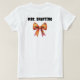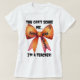 You cant scare me... I'm a teacher T-shirt Halloween Occupation Tshirt This not-so spooky and scary this tshirt has an orange coquette bow that looks like it's made of pumpkin insides and stitched with black thread. The back has a small version of the same bow, and can be personalized with your name, or the name of your favourite teacher. You can also change "teacher" to any other career, as it is completely customizable. Bring humour and fun to this Halloween Holiday season with this You can't care me, I'm a teacher Halloween Tshirt.