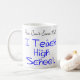 Show off your teaching attitude as you go back to school this year. This mug design is all text written using green, blue, and black featuring the phrase: "You can't scare me! I Teach High School." Wonderful gift to say thank you to a teacher during teacher appreciation week and end of year or at anytime in between.