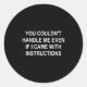 You Couldn't Handle Me Even If I Came With Instruc Classic Round Sticker