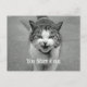 Photograph of a tabby-and-white cat snarling with customizable text printed below, "You figure it out."