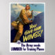 This vintage World War II poster features a pilot getting into his plane, and aircraft flying in the background. It declares, "You Give Him Wings! The Army Needs Lumber For Training Planes". Celebrate American and WW2 History with this digitally restored vintage war poster product from The War Is Hell Store.