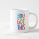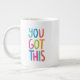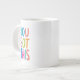 The term "jumbo mug" refers to a large-sized cup or mug that is designed to hold a larger quantity of liquid than a standard-sized coffee or tea mug. These oversized mugs are typically made from sturdy materials such as ceramic or porcelain to ensure durability and heat retention. With their larger capacity, jumbo mugs provide the user with the convenience of enjoying more hot beverage without the need for frequent refills. Moreover, they often feature an ergonomic handle that makes it easier to hold and sip from, ensuring a comfortable drinking experience. Jumbo mugs have become increasingly popular among avid coffee or tea drinkers who prefer larger servings or those who simply enjoy savouring their hot drinks over an extended period. Their size also allows for customization and personalization, making them a favored choice as gifts or promotional items for businesses seeking to elevate their brand recognition.