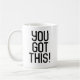 You Got This! modern typography coffee mug. Custom colour cup with motivational quote or personalized text. Meaning; seize the day. Black and white design. Elegant mug for home or office. Cool Birthday gift idea for friends, family, teacher, coworker, colleague, boss etc. Double sided print.