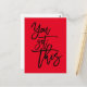 Give someone a boost and send them a postcard with a positive vibe! This has motivational words You Got This in a stylish black script typography against a bright red background which can be changed to a different colour if you so wish via the Click to Customize Further option.