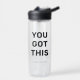 You Got This Simple Black Colour | Named Clear Water Bottle design. You can leave the words "YOU GOT THIS" or personalize it with your own text. Add your name to it, too. It is simple and easy to customize to your need. Perfect for going away to college gifts or for someone who needs words of encouragement!