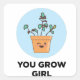 This "You grow Girl Square Sticker" is the perfect way to show your support for women empowerment and growth. Made from high-quality vinyl, this sticker is durable and water-resistant, making it perfect for indoor or outdoor use. The bold and empowering message is sure to inspire anyone who sees it. Whether you're sticking it on your laptop, water bottle, or car bumper, this sticker is a great way to show the world that you believe in women and their ability to achieve anything they set their minds to.