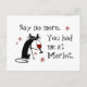Say no more. You had me at Merlot! Did you mean "You had me at hello"? No! And yes, this is a very punny wine pun. Pretty good, too, if The Cabernet Cat does say so himself. Here's a punny postcard.