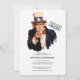 Celebrate your loved one's birthday with this military style call to action report for duty birthday invite. Let uncle sam do the calling for you. This design is composed of watercolor Uncle Sam.