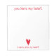 NewParkLane - Romantic Note Pad, with a big red heart, and a quote of the last two lines of the famous poem by E.E. Cummings 'I carry your heart with me':