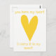 NewParkLane - Postcard, with with a big yellow heart, and a quote with the last two lines of the famous, romantic poem by E.E. Cummings 'I carry your heart with me': You have my heart (i carry it in my heart)'.