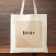 These bags were super cute (I purchased 3). The material is more of a canvas look & feel. The colour of the bag is slightly off white, but the letters look exactly as pictured. I took 3 photos in different lighting. Would recommend! I liked how there was an option to choose the font and colour of the name. The words are legible and the colours are exactly as pictured.