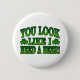 You Look Like I Need a Beer Button will be great for St. Patrick's Day or anyone Irish and features Irish shamrocks and of course, green! Be sure to check out all of our Irish and St. Patrick's Day Buttons.