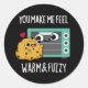 You Make Me Feel Warm And Fuzzy Funny Oven Pun features a cute cookie cuddling up to his pal oven . Perfect pun gift for family and friends who love cute food baking puns.