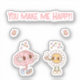 Cheerful cutout sticker featuring a happy walking brain with chemical DNA smilies and the text You Make Me Happy! (text is customizable).