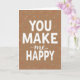 This card shares a simple, heartfelt message with a warm and cheerful design. In the center, bold white letters read “YOU MAKE me HAPPY.” The words “YOU MAKE” and “HAPPY” are strong and easy to read, while “me” is written in a flowing script that adds a personal, gentle touch.