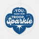 This cute scouting Christmas ornament is perfect for any scout or leader. The quote reads, "You make our troop sparkle" The same design is on both sides but you can delete the design on one side if you want to add a personal message. This would be a great gift for anyone involved in scouting.