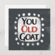 "You Old Goat" is a fun text design with a white accent shape surrounded by white whimsical textured dots.
