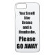 A drawing of the words "You Smell Like Drama And A Headache, Please Go Away." in black font.