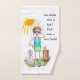 Very happy that the product arrived on time. It's cute and the recipient loved it. My only concern is the quality of the towel , it's not bad - but not sure how well it will wash & hold up. The printing turned out good.