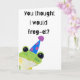 Custom, hand-painted, watercolor, folded, cute, and punny birthday card with a frog and its party hat!