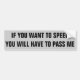 You Want to Speed? Pass Me Bumper Sticker