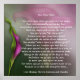 Beautiful digital painting of deep pink calla lilies form the background for this wonderful poster that makes a perfect Mother's Day gift! The poem reads: You Were There You were there when we took our first steps, And went unsteadily across the floor. You pushed and prodded: encouraged and guided, Until our steps took us out the door... You worry now "Are they ok?" Is there more you could have done? As we walk the paths of our unknown You wonder"Where have my children gone?" Where we are is where you have led us, With your special love you showed us a way, To believe in ourselves and the decisions we make. Taking on the challenge of life day-to-day. And where we go you can be sure, In spirit you shall never be alone. For where you are is what matters most to us, Because to us that will always be home... There is then an area that you can personalize and sign with your name or the names of all the children. What a wonderful gift for your mother anyday of the year. Stunning framed! Also a elegant beautiful piece without the text if you wish.