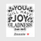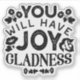 Bring encouragement and positivity with this inspirational quote design: “You Will Have Joy and Gladness.” Inspired by scripture, this uplifting message is perfect for Christians, people of faith, or anyone who loves motivational art. Great for shirts, mugs, stickers, wall art, and thoughtful gifts that spread joy and encouragement.