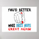 You'd Better Make Deez Nuts Great Again text and a line drawing of woman's palm with an index finger pointing at the viewer. Funny 2016 election gifts, prints
