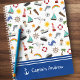 Give your little captain his very own sailor-themed notebook! Notebook features your young boy's first name preceded by the title Captain (or the title of your choice). At the top is a pattern of sailor-related images -- sailboats, sailors, rainbows, suns, lighthouses, dolphins, whales, and more. Any young sailing fan will love this adorable ocean-themed notebook.