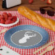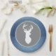 Party plates feature a white deer silhouette with a grey background, white outline, and a denim texture background. Super fun for any buck, deer, or hunter theme birthday or baby shower.