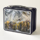 This is a standard metal lunchbox that appears to work just fine. We designed this box ourselves with an uploaded photo and custom text on the front and back. It looks absolutely beautiful except the front of the lunchbox is not centered like it shows in the photo. The print borders don't align with the inset flat part of the box where the preview photo online showed it perfectly centered in there. The back looks nice and centered though.