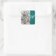 YOUNG GIRL ,COLORFUL RIBBON SWIRLS, CUPID MONOGRAM SQUARE STICKER