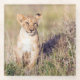 A young lion sitting beside a termite mound. This image was taken on a safari in Kenya, Masai Mara Game reserve. © Angelika Stern