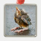 Photograph of a young robin standing on pavement looking up for parent. Customizable year.