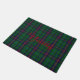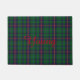 Traditional blue, green, yellow and red clan Young tartan plaid door mat, with red script text ready to personalize. Great gift idea.