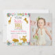 Young Wild And Three Pink Gold Safari Birthday Invitation