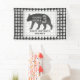 Third birthday theme featuring a watercolor inspired illustration of a bear with "Young Wild & 3" phrase. Border is weathered grey gingham design.
