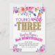 Young Wild & Three Girls Boho Floral 3rd Birthday Invitation