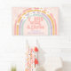 Retro inspired young wild and three 3rd birthday banner with hippie style pastel rainbow, and daisies