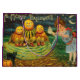 The Witch's Brew - In a quaint little village, nestled amidst rolling hills and verdant fields, lived a young girl named Anya. Anya was a curious child, with a penchant for the unusual and a love for the macabre. Her favourite time of year was Halloween, when the veil between the worlds grew thin, and the spirits of the night roamed free. - One Halloween, Anya stumbled upon a peculiar vintage card in her grandmother's attic. The card depicted a scene of eerie beauty, with a starry night sky, a crescent moon, and a young witch-like girl. The girl was surrounded by three grotesque creatures, carved from pumpkins and melons, their faces contorted into expressions of otherworldly delight. - Intrigued by the image, Anya began to research the symbolism of the card. She discovered that the creatures were believed to be guardians of the underworld, summoned by witches to protect their dark rituals. The girl in the picture, with her glowing eyes and sinister smile, was said to be a powerful sorceress, capable of bringing the dead back to life. - Inspired by the legend, Anya decided to recreate the scene from the card. She gathered pumpkins and melons of various shapes and sizes, and with a steady hand and a sharp knife, she carved them into grotesque and terrifying creatures. Then, under the watchful eye of a waning moon, she lit a small fire and began to chant an ancient incantation. - As the fire crackled and the wind howled, the creatures on the card seemed to come to life. Their eyes glowed with an eerie light, and their mouths moved as if they were speaking in a language unknown to man. Anya, filled with a sense of wonder and fear, watched as the creatures danced and cavorted around her, their movements graceful and yet menacing. - In the end, Anya's Halloween adventure was a success. She had not only brought the creatures from the card to life, but she had also learned the true meaning of magic and the power of imagination. And as the first rays of dawn touched the horizon, Anya knew that she would never forget the night she summoned the creatures of the underworld. - This work 1900-1916 is in the public domain in the United States because it was published (or registered with the U.S. Copyright Office) before January 1, 1927.
