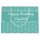 Say “Happy birthday” with this versatile teal and white party theme that’s perfect for any age, from toddlers to centenarians. It’s suitable for boys, girls, men, women, and especially those celebrating milestone birthdays. The simple graphic design features your age number repeated in a tiled, seamless pattern in the background, while the words “Happy birthday” and a name are printed on the front.