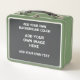 This is a standard metal lunchbox that appears to work just fine. We designed this box ourselves with an uploaded photo and custom text on the front and back. It looks absolutely beautiful except the front of the lunchbox is not centered like it shows in the photo. The print borders don't align with the inset flat part of the box where the preview photo online showed it perfectly centered in there. The back looks nice and centered though.