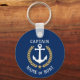 Your Boat Name Captain Anchor Laurel Navy Blue Keychain