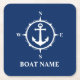 Your Boat Name Compass Anchor Blue Square Square Paper Coaster